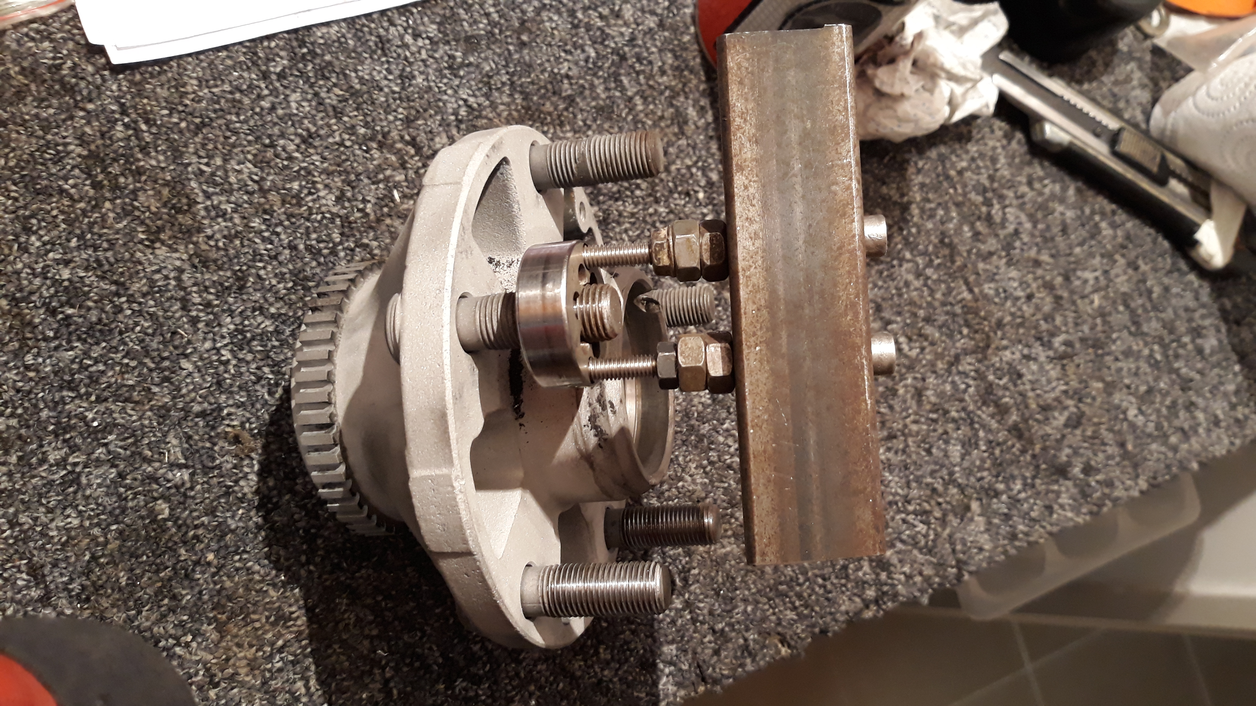 Nettoyage des moyeux, sablage et passage d'une filière sur les goujons... avec un outil simple mais efficace