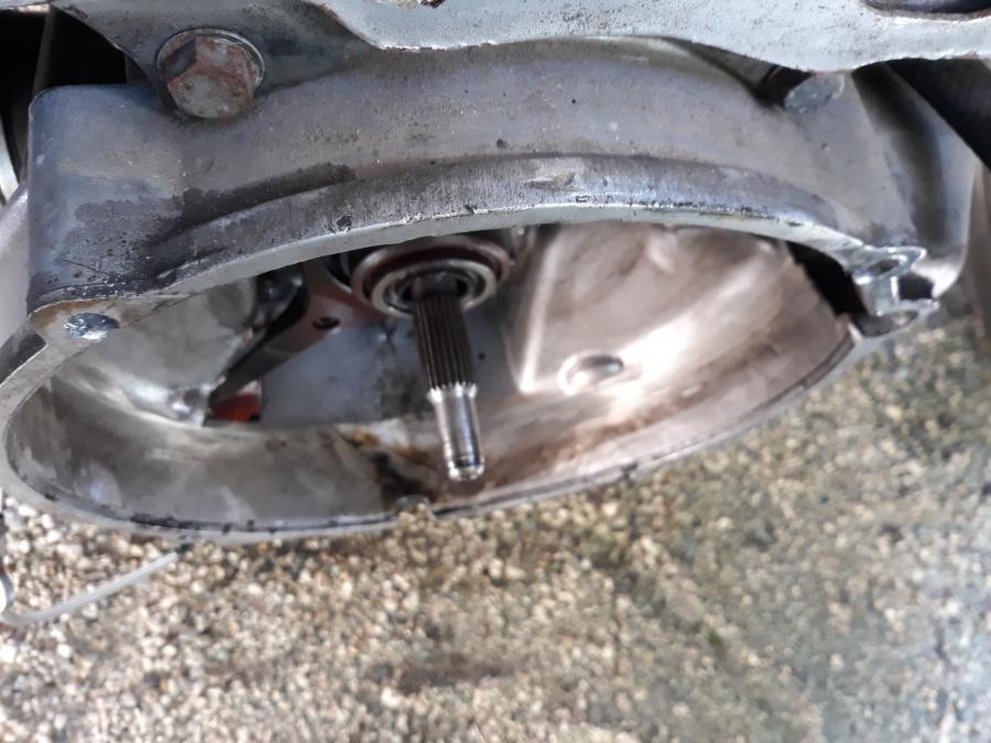 Mais la joie fut de courte durée... ça fuit et l'embrayage patine dans l'huile ! Donc un joint spi de boîte ou de vilo. Fait chier, faut tomber le moteur!