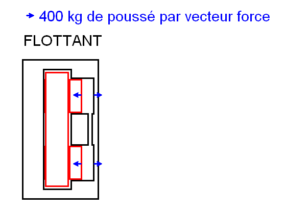 Maintenant prenons le cas d'un étrier flottant, on reprend exactement le même exercice soit une pression de 20 bars agissant sur une surface de 20cm² donnant une force de 400Kg ceci donnant: