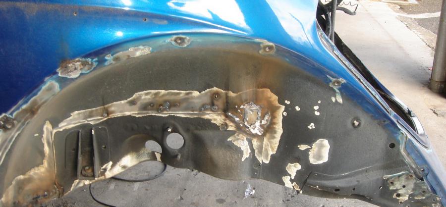 et puis voila le 1er angle (arrière gauche) reste encore la partie ou ce fixe le marche pied puis un bon ponçage (pour demain)