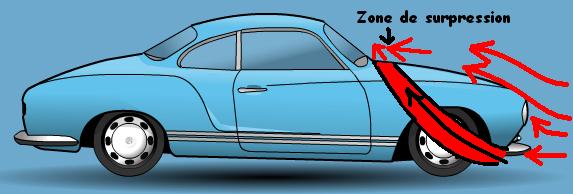 Au delà de ce problème, il y a un autre aspect aérodynamique dont peu de gens se souci, c'est le flux d'air qui une fois rentré dans les ailes AV (et AR), fait le tour de la roue et s'écrase au sol provoquant encore le soulèvement de la caisse. Mais ça, c'est à plus haute vitesse...