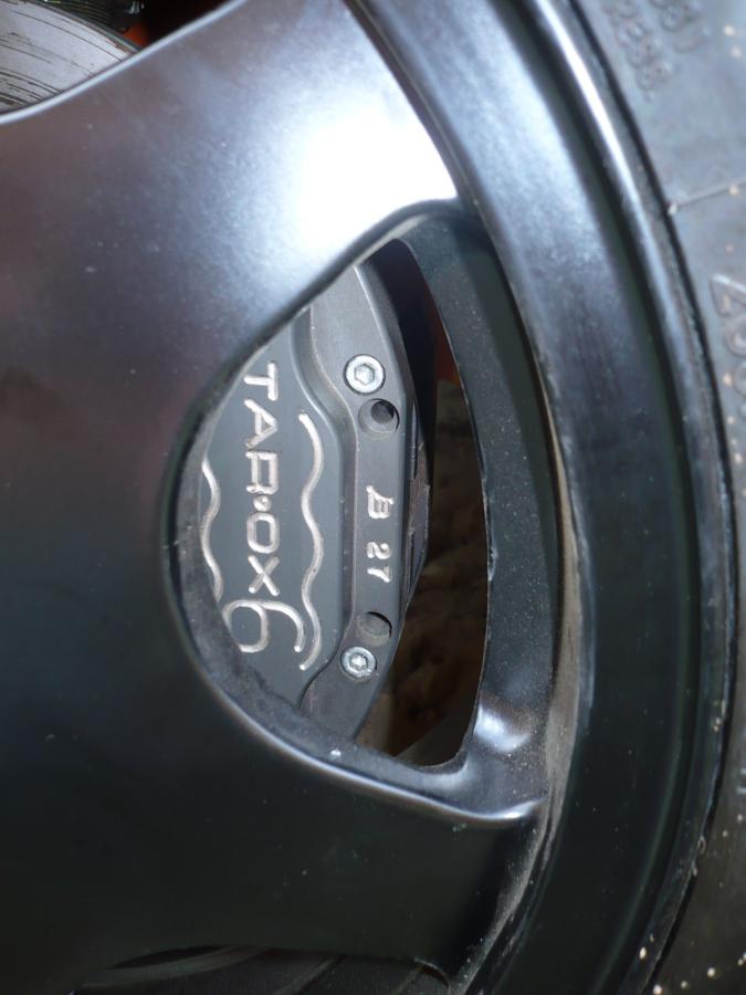 Allez, un peu de motiv et 1H devant moi : J'ai attaqué le freinage du côté gauche, l'étrier Tarox est passé devant, à sa place initiale, et le kit Empi de l'arrière est quasiment monté ! Si j'avais pas un moteur à acheter, je me serais bien fendu d'une deuxième paire de Tarox pour l'arrière :rambo:...