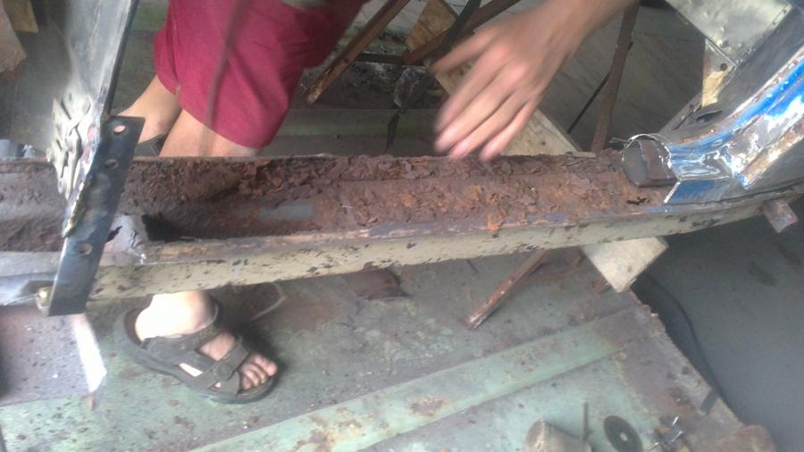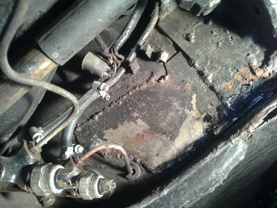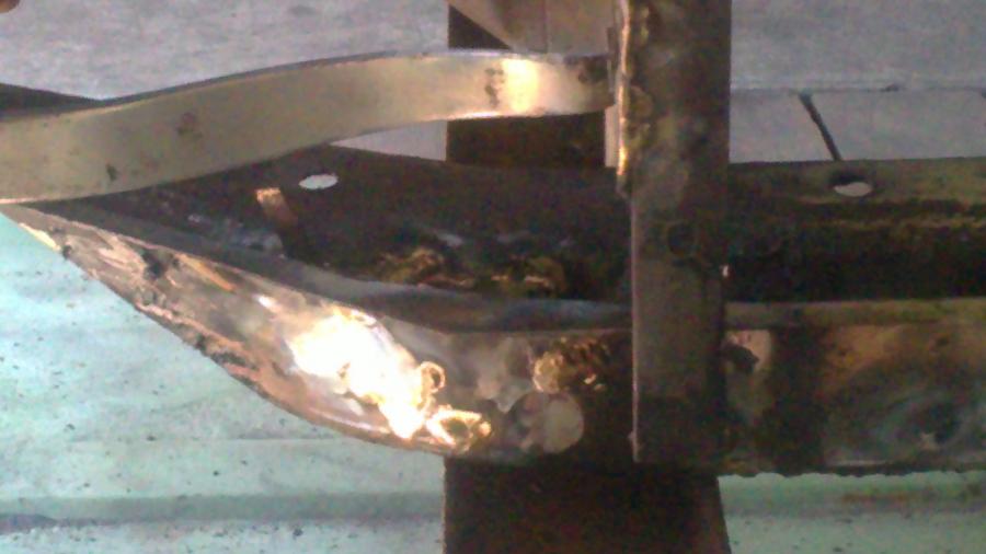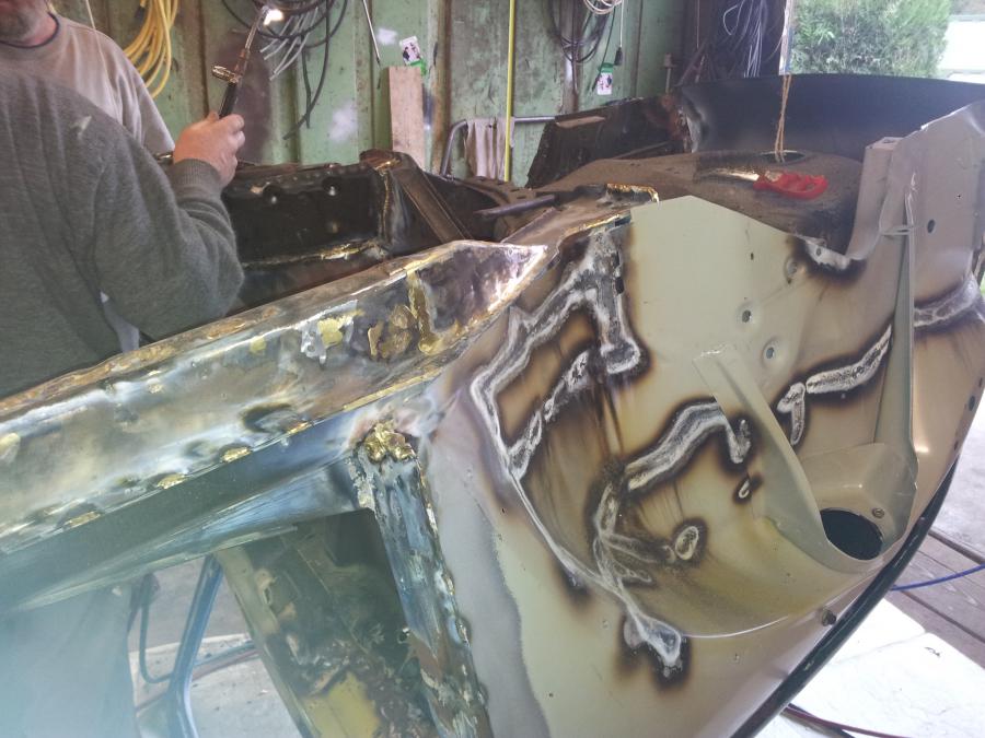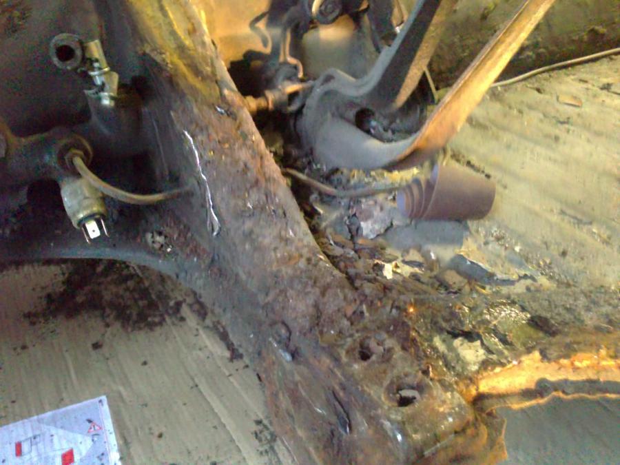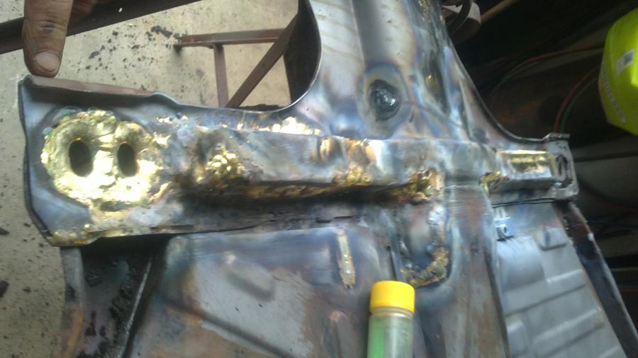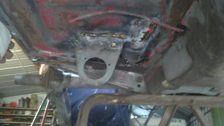 "soudure entre châssis et coque" sur le chassis de nombreux trous sont présents et un demi-plancher et très fragilisés ainsi que les trous de passage de vis du chapeau de gendarme sur la coque de nombreux rajouts de tôles à l'automatique 3 parfois 4 épaisseurs un longeron a changer les deux renforts avant la contre aile droite celle de gauche a combler les soudures la tôle de fond avant le tableau de bord a remplacer car il a été découpé.. les traverses arrières et des partis de fond de coffre à ressouder y a du taff