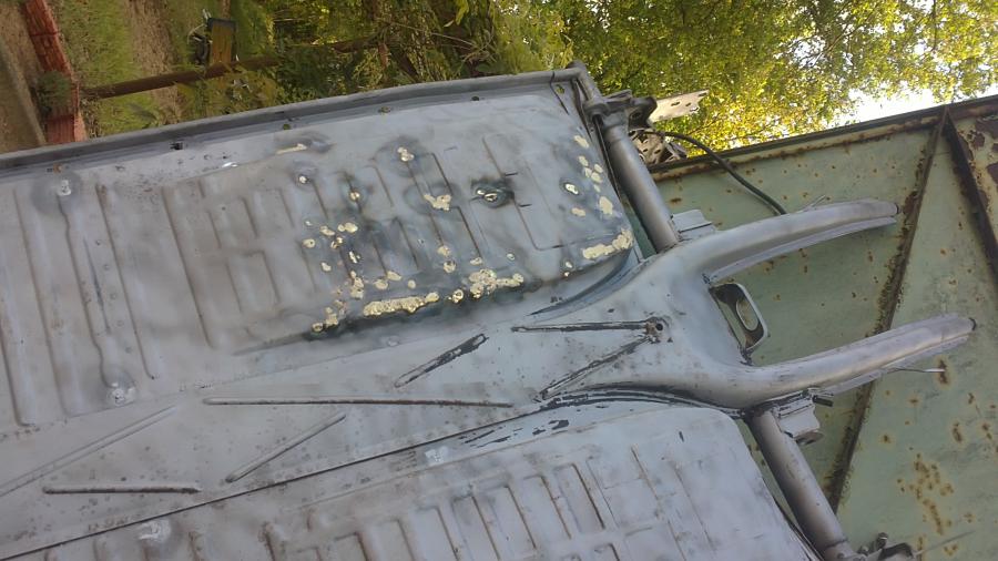 sur la coque de nombreux rajouts de tôles à l'automatique 3 parfois 4 épaisseurs un longeron a changer les deux renforts avant la contre aile droite celle de gauche a combler les soudures la tôle de fond avant le tableau de bord a remplacer car il a été découpé.. les traverses arrières et des partis de fond de coffre à ressouder y a du taff
