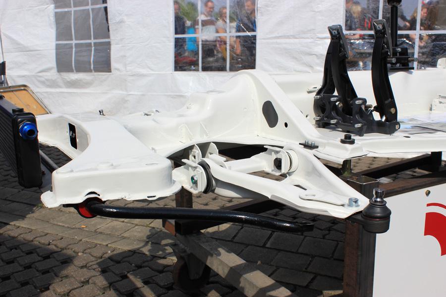 Chassis MBT que j'ai hyper détaillé en photos. Il faudrait que j'ouvre un post. Apparemment, triangles Renault Megane/Clio, mais les fixations nous ont parues un peu légères...