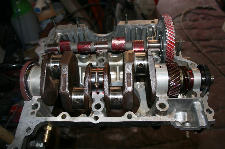 c'est parti .débouchage +plug des galeries d'huile, ébavurage du carter remplacement des gougeons de ponpe a huile+ allignement des conduit ,perçage d'une mise a l'air au dessu du 3eme cylindre. demain premier montage a blanc