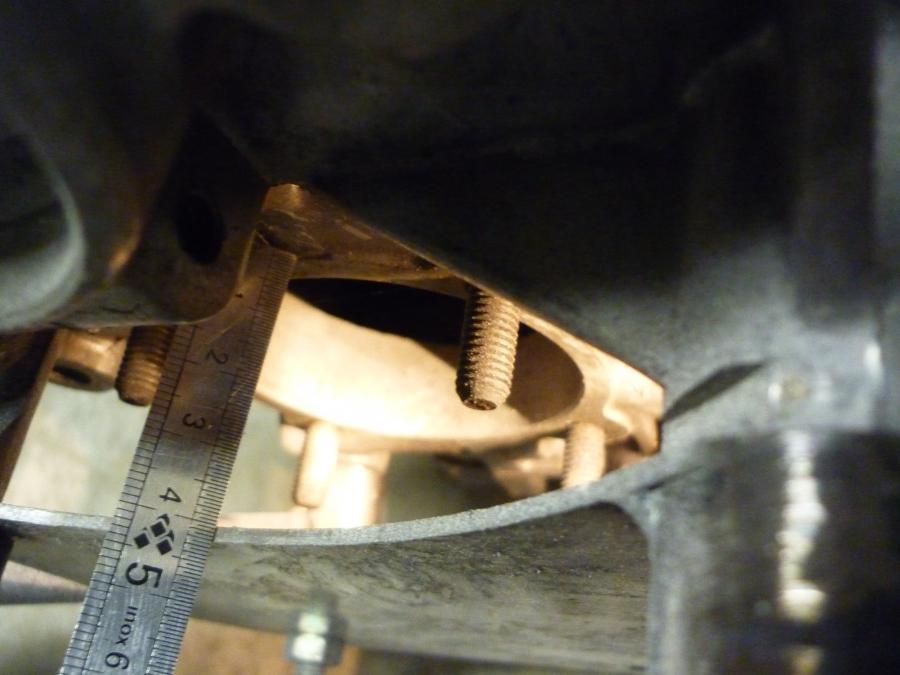 Voila l'espace dont je dispose au niveau de la pompe à huile, l'échappement est de l'autre coté du support moteur quasiment contre les vis donc pas beaucoup de marge pour reculer tout ça.