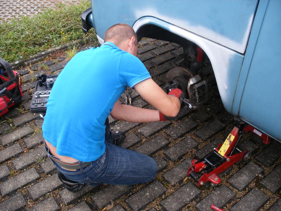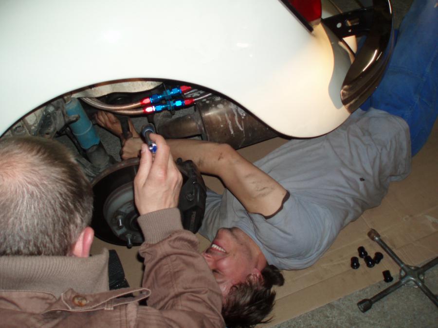et des mécaniciens de précision (le trotoir comme support , un tournevis et une clé a molette pour frapper) férus