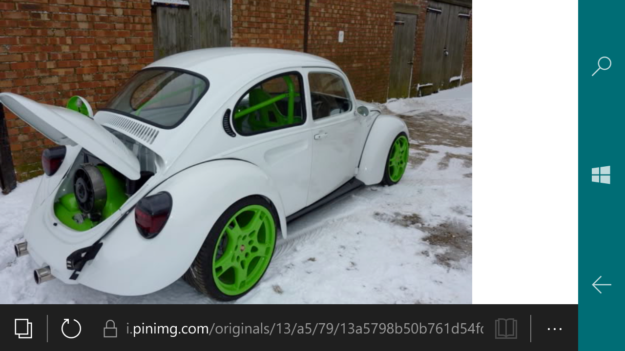 Chez les anglais, je me souviens d'une 1303 blanche germanlook avec des porsches vertes, elle était violente, si tu peins le bay en blanc, ca va le faire, mais pas avec le look carnaval actuel :D