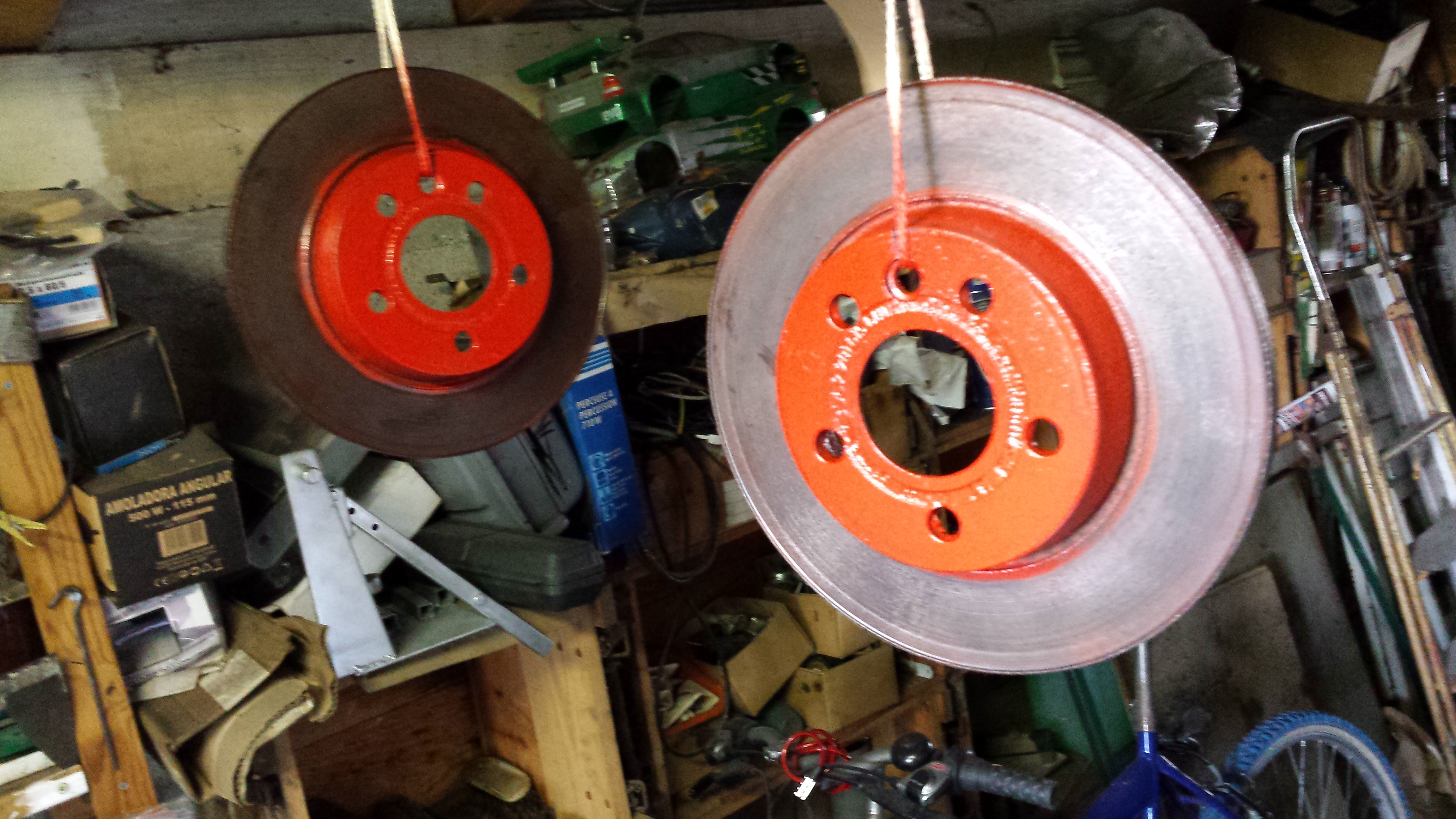 En gros c'est le même montage que j'ai fait sur le bay avec disque de merco étrier de golf 2 GTI usinage du moyeu arrière de bay et platines faites en usinage