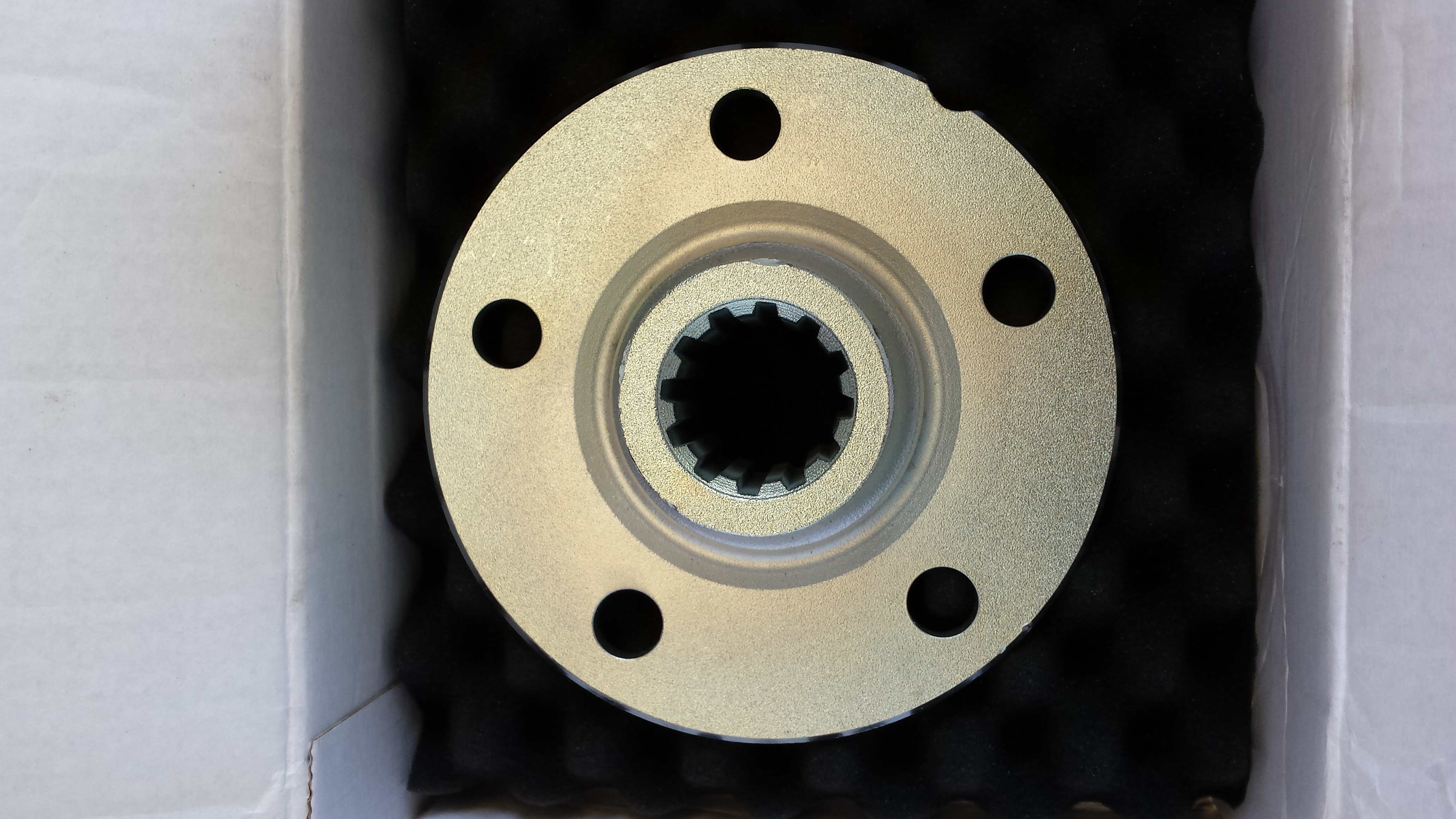 Ensuite j'ai reçu les platines d'adaptations et les moyeux (que j'ai commandé après m'être aperçu que les moyeux d'origines sont d'un diamètre trop important pour les disques de T4).