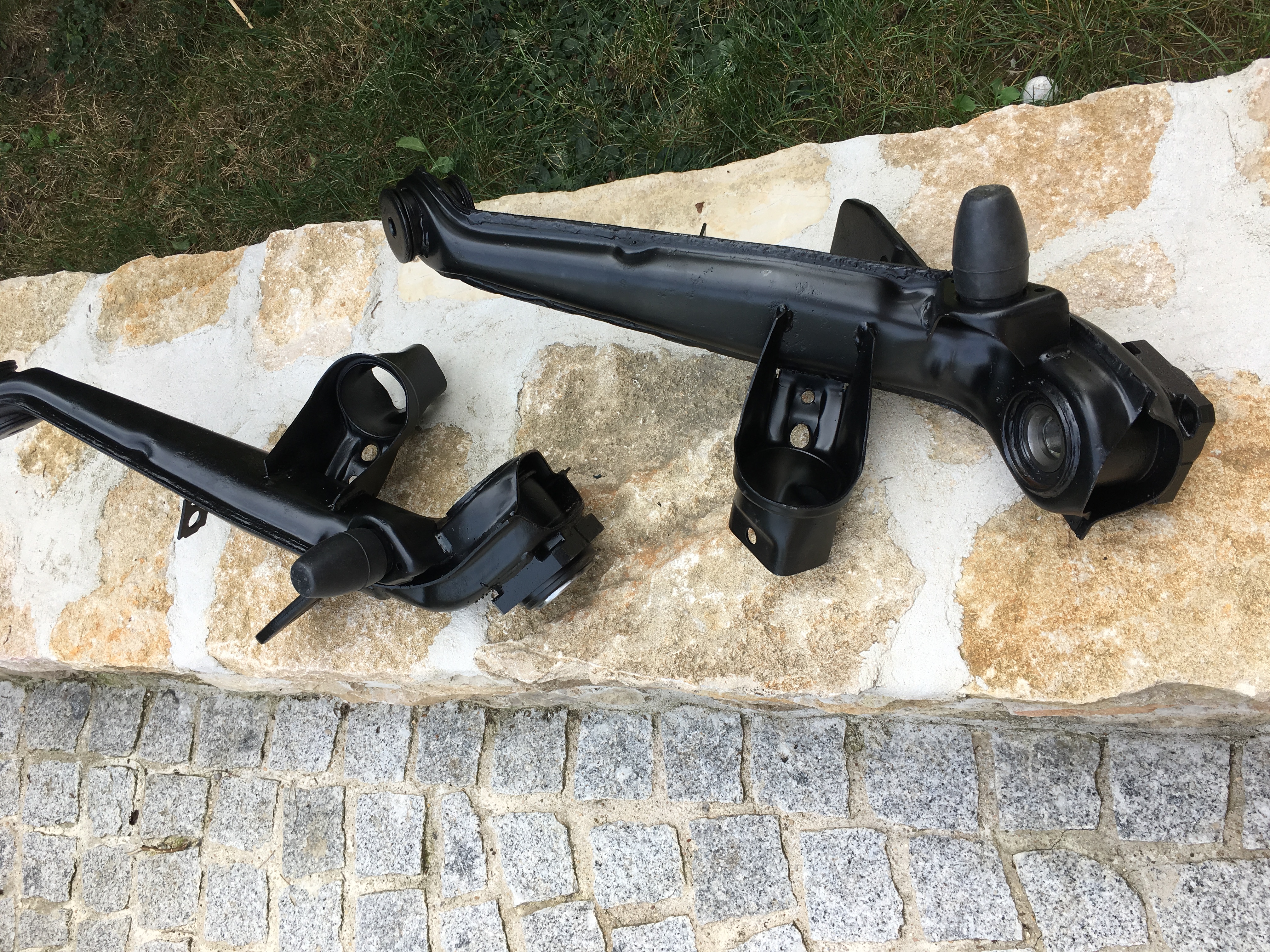 Je vends deux bras de suspension de Porsche 944 totalement restauré. Les bras ont été sablés, repeints, et un nouveau jeux de roulement a été monté.