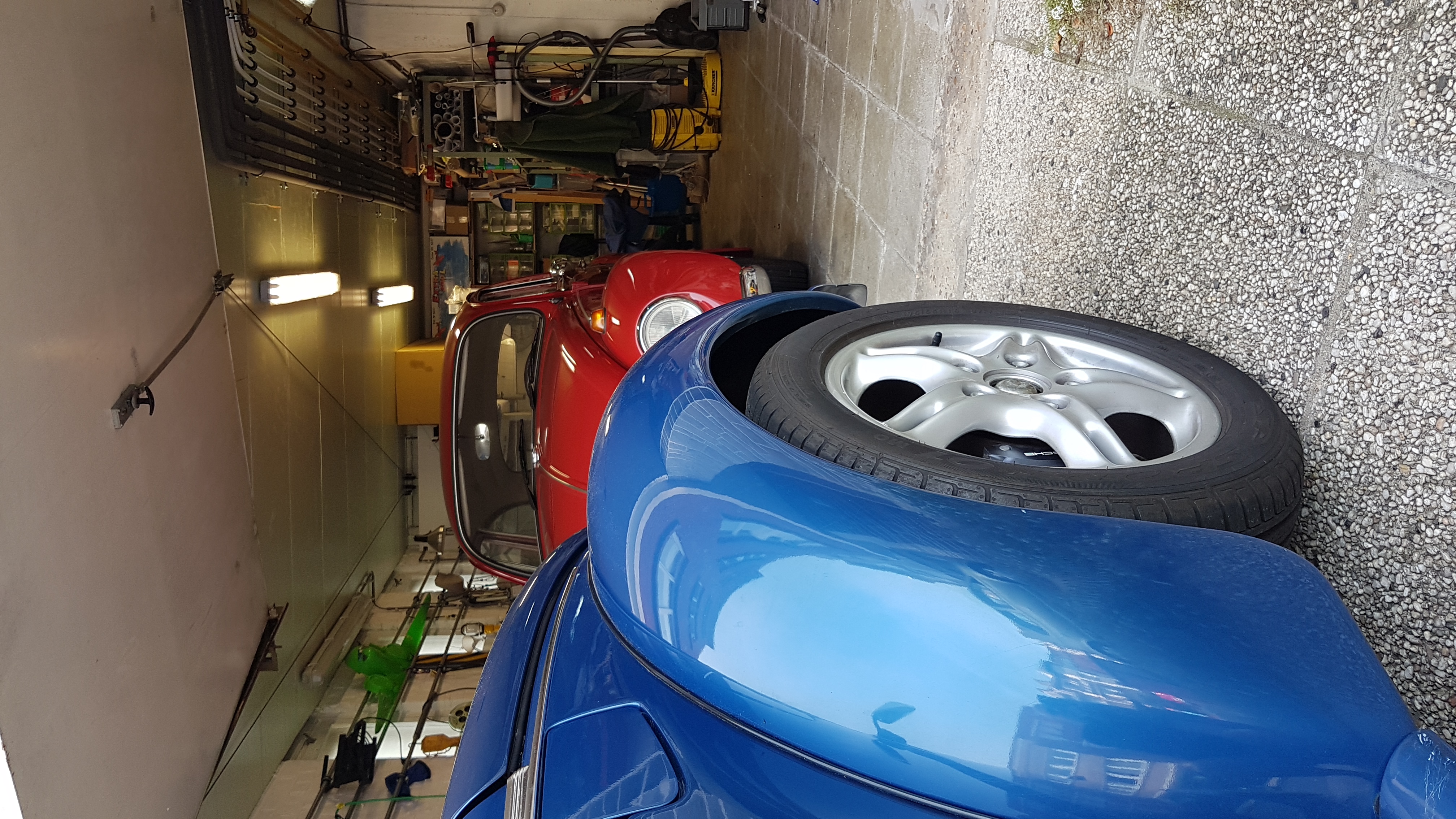 Dans l'immédiat, je vais remplacer les roues arrières, les 195/55/16 sont plus petits que des pneus d'origine. J'ai 2 jantes Boxster de 17 pouce en 7 pouce de large, équipé de 205/50. Elles devraient rentrer sous les ailes d'origine.