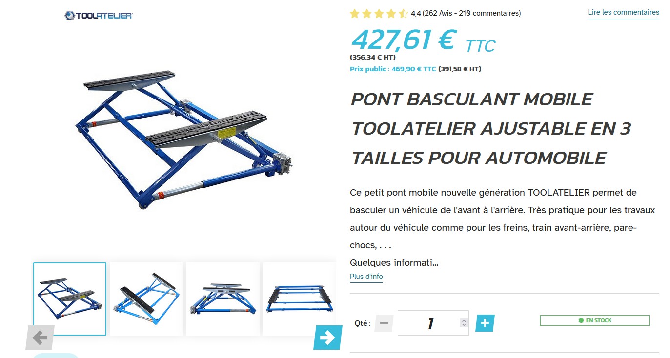 Je vends ce pont élévateur de marque ToolAtelier ( Mecatechnic ).
